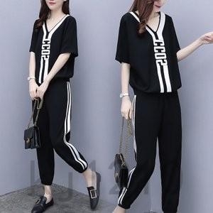 ブランドのギフト セットアップレディース上下2点セットブラウスtシャツス半袖vネックパンツ9分丈ストライプトレーナーカジュアル快適スポーツウ セットアップ サイズ L Www Sustentec Com Br
