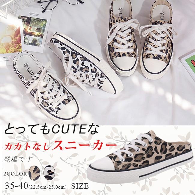 スリッポン レディース スニーカー 軽量 かかとなし 編み上げシューズ レースアップ キャンバス ヒョウ柄 フラット カジュアル 履きやすい 美脚 可愛い おしゃれ 大きな取引